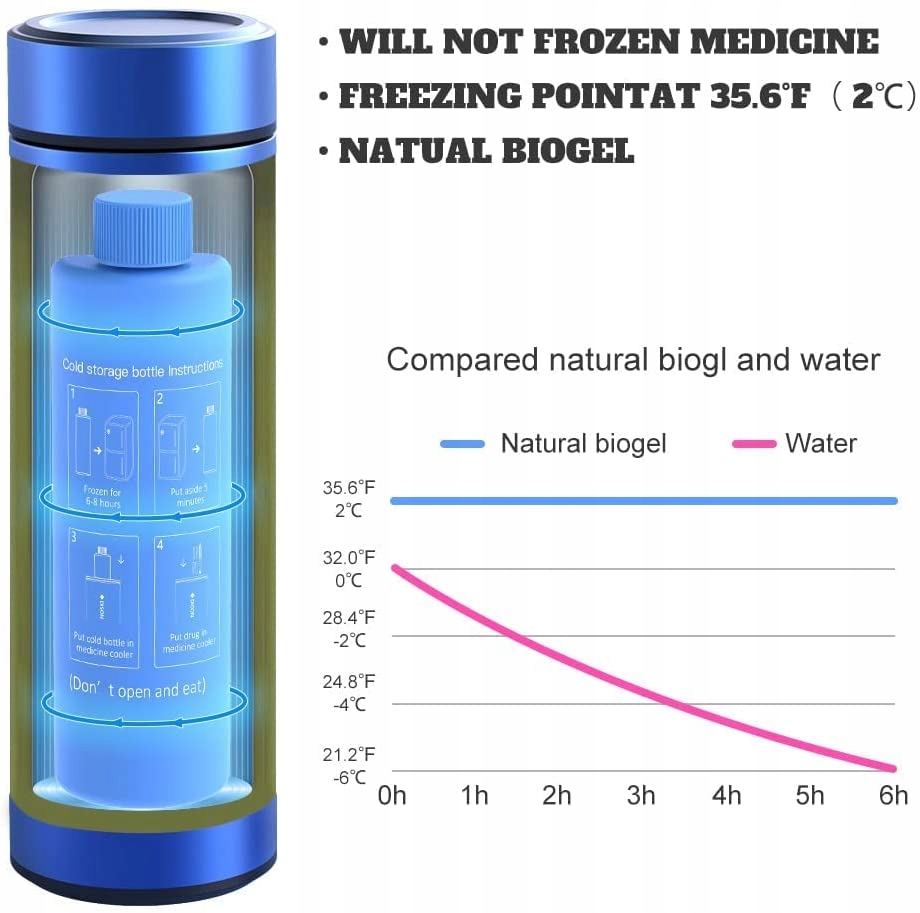 Портативный дорожный футляр с охладителем инсулина, удобный для переноски, разрешен TSA и регистрация на рейс. 【Отличный охлаждающий эффект】Охладитель инсулина позволяет поддерживать температуру инсулина на уровне 36-46°F (2-8°C) в течение 28 часов, 36-80°F (2-26°C) в течение 48 часов. даже при температуре окружающей среды 104°F (40°C). По особым причинам можно наполнить еще одну аварийную бутылку ледяной водой, чтобы продлить время охлаждения на 12 часов. Эквивалент нашего охладителя инсулина может охлаждать лекарства на срок до 60 часов. Охлаждающий эффект лучше, чем у сумки-холодильника для инсулина. 【Материал】 Производительность лучше, чем у пакетов для заморозки. Конструкция корпуса чашки из нержавеющей стали (внутренняя вакуумная конструкция) может лучше защитить инсулин и лекарства. 【Супервместительность】Дорожный холодильник для инсулина может вместить 2 инсулиновые ручки нормального размера. Он в основном используется для хранения инсулина и лекарств, которые необходимо хранить при температуре 2–25 ℃. Эффективно защищает конфиденциальность. Лучший выбор для путешествий по всему миру: он легкий и прекрасно помещается в ручную сумку или багаж.