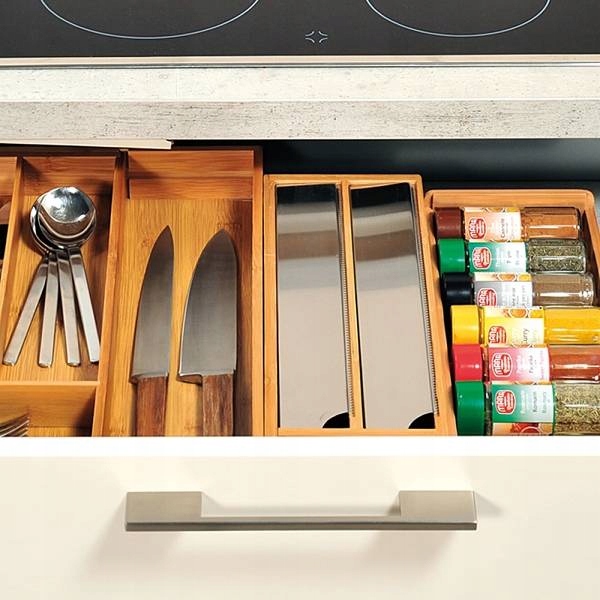 - прочный и практичный органайзер для кухонного ящика из бамбука дерево,