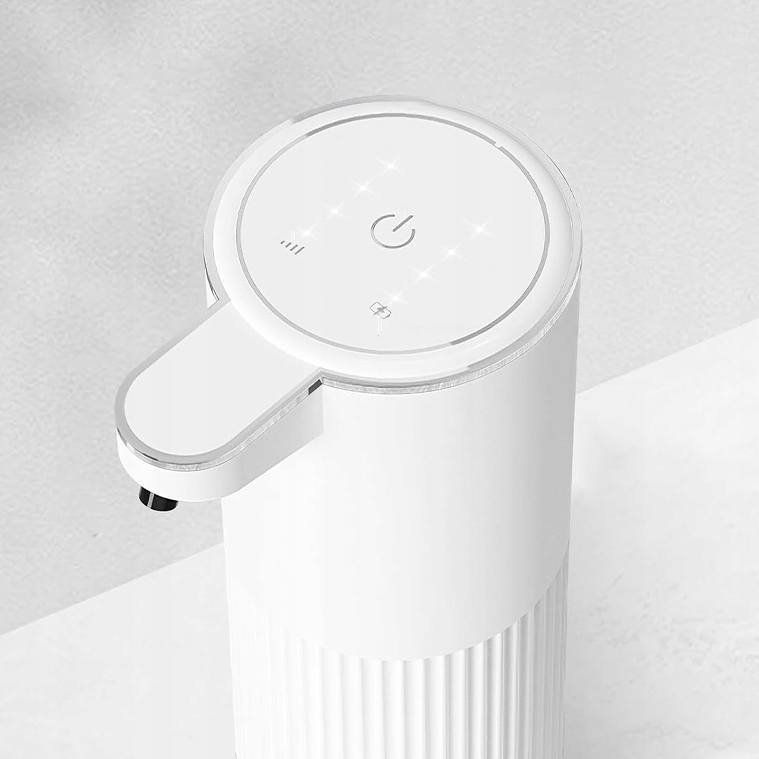 🧴 4-градусная регулировка: Нажмите кнопку вверху, и есть 4 разных количества мыла на выбор, подходящие для различных потребностей, связанных с очисткой. Уровень 1 используется для ежедневного мытья рук, а уровень 4 - дезактивации. Вы всегда можете проверить количество текущей жидкости на основе количества включенных огней, чтобы вы могли настроить скорость потока мыла в свои руки.