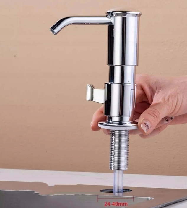 Дозатор мыла с усиленным резьбовым стержнем подходит для большинства столешниц. Подходит для жидкого мыла, лосьона или жидкости для мытья посуды на кухне и в ванной. Насос и держатель губки можно вращать на 360 градусов во всех направлениях.