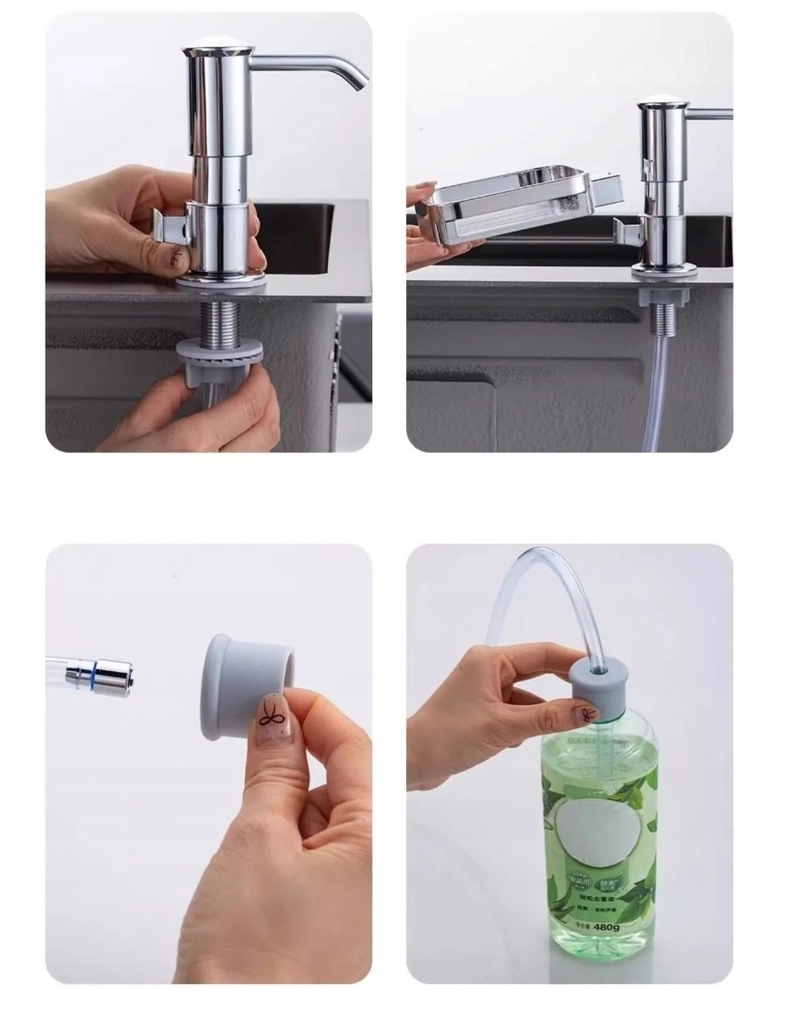 Больше не нужно ползать под раковиной. Наш элегантный дозатор мыла оснащен шлангом длиной 1 метр, который ведет непосредственно к большой бутылке с жидкостью для мытья посуды, поэтому вы можете избежать частого процесса дозаправки