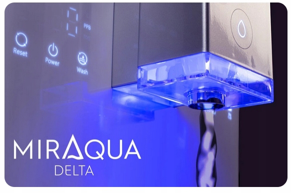 Miraqua DELTA - многофункциональный диспенсер для воды, который фильтрует, минерализует, нагревает и охлаждает воду, забираемую непосредственно из водопроводной сети. Диспенсер предлагает целых 6 различных температур воды. Благодаря эргономичному корпусу дозатора DELTA занимает очень мало места и легко помещается на любой кухонной столешнице дома и в офисе, а также в таких помещениях, как конференц-залы или залы ожидания.