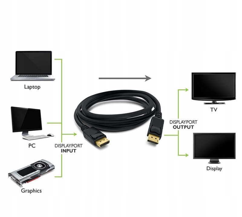 Высококачественный кабель позволяет подключать компьютер, ноутбук, декодер и другие устройства, оснащенные разъемом DisplayPort, к телевизорам, мониторам и другим устройствам, оснащенным разъемом DisplayPort. Кабели экранированы, что обеспечивает высочайшее качество изображения и звука без помех. Защелки на обоих концах предотвращают выпадение кабеля из разъемов. Драйверы не требуются — подключи и работай.