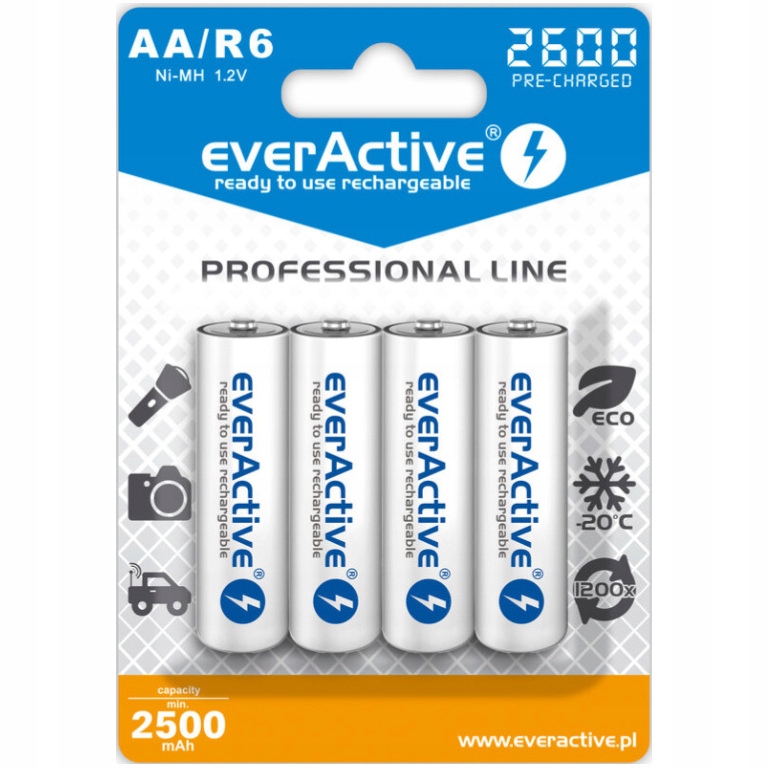 EverActive UC 4000 — новое профессиональное качество в универсальных зарядных устройствах с одновременной поддержкой Ni-MH и Li-ion аккумуляторов, в комплект входят аккумуляторы EverActive Professional Line, палочки R06/AA 2600 мАч, 4 шт.