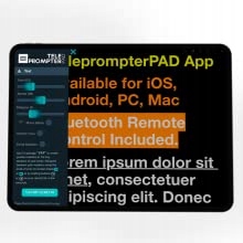 Пульт дистанционного управления работает с бесплатным приложением TeleprompterPAD, доступным для устройств iOS, Android, Windows и MacOS.