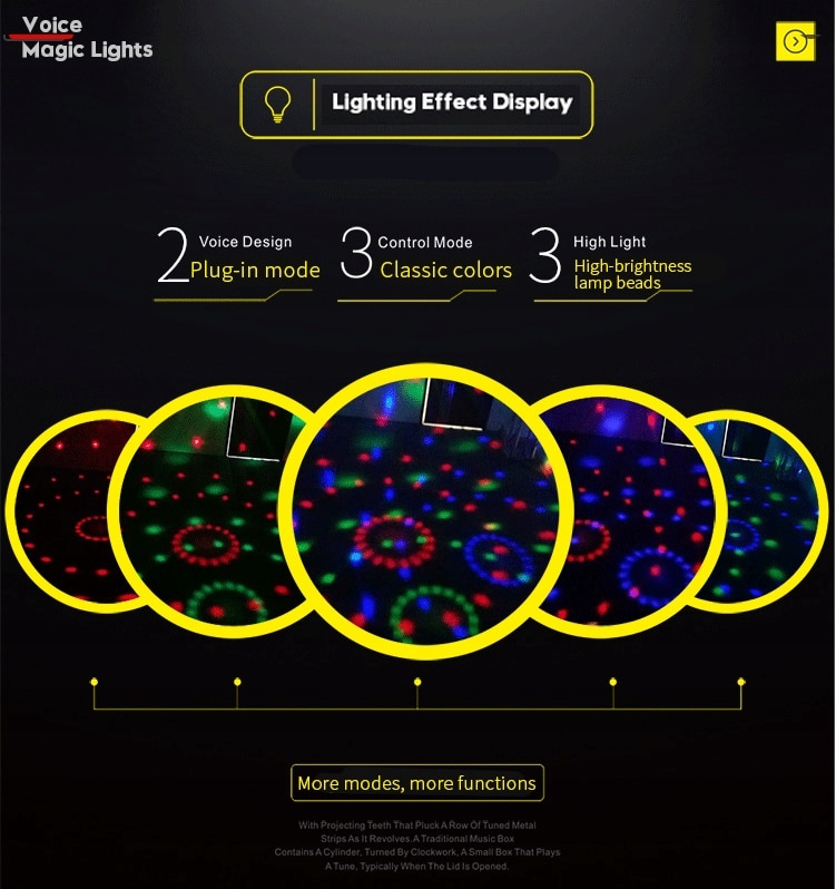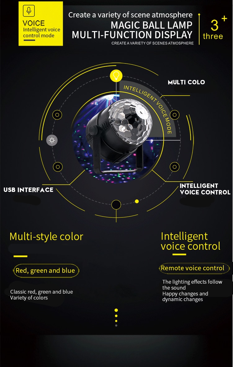 Трехцветный светильник для дискотеки небольшой и его легко носить с собой. Трехцветный диско-свет может осветить комнату площадью 100 квадратных футов. Чем темнее окружающая среда, тем лучше эффект освещения. Подходит для различных мероприятий в помещении и является лучшим освещением для вечеринок.