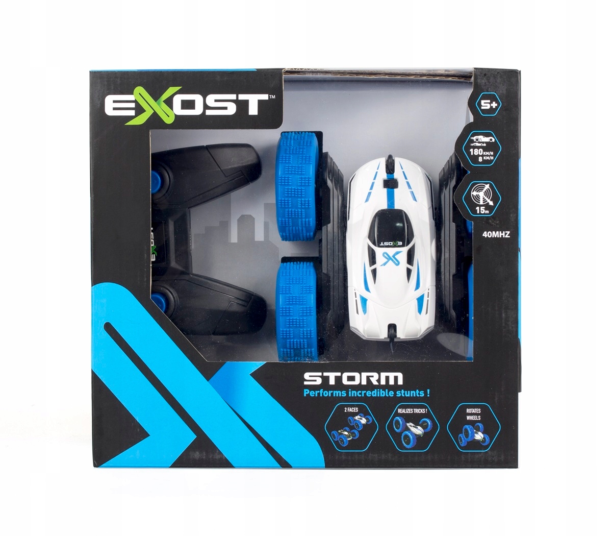 Storm — транспортное средство, способное совершать настоящие акробатические трюки! Он имеет независимые управляемые оси, благодаря которым может поворачивать колеса и преодолевать препятствия. Его двусторонний корпус разнообразит веселье. Управляется с помощью прилагаемого пульта дистанционного управления. Игрушка предназначена для детей от 5 лет.