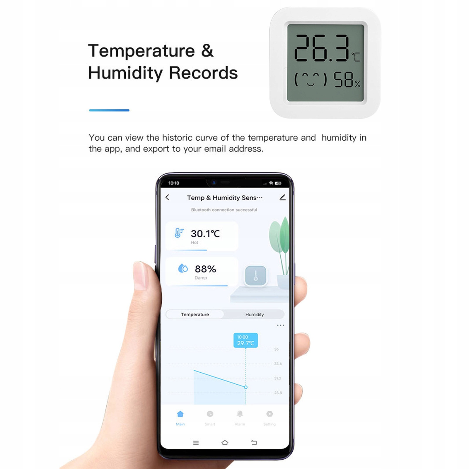 3. Просмотр данных в реальном времени: с помощью мобильного приложения вы можете просматривать тенденции данных температуры и влажности в реальном времени, а также просматривать записи исторических данных. Это поможет вам понять изменения в вашей внутренней среде и лучше управлять ею и адаптироваться.