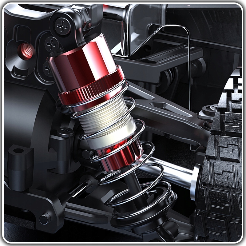 благодаря полностью металлическому амортизатору масла, металлической головки, защищающей от столкновения и полностью металлической системы передачи привода с дифференциалом металла, этот автомобиль строится таким образом, чтобы противостоять удару и легко справиться с трудной областью.