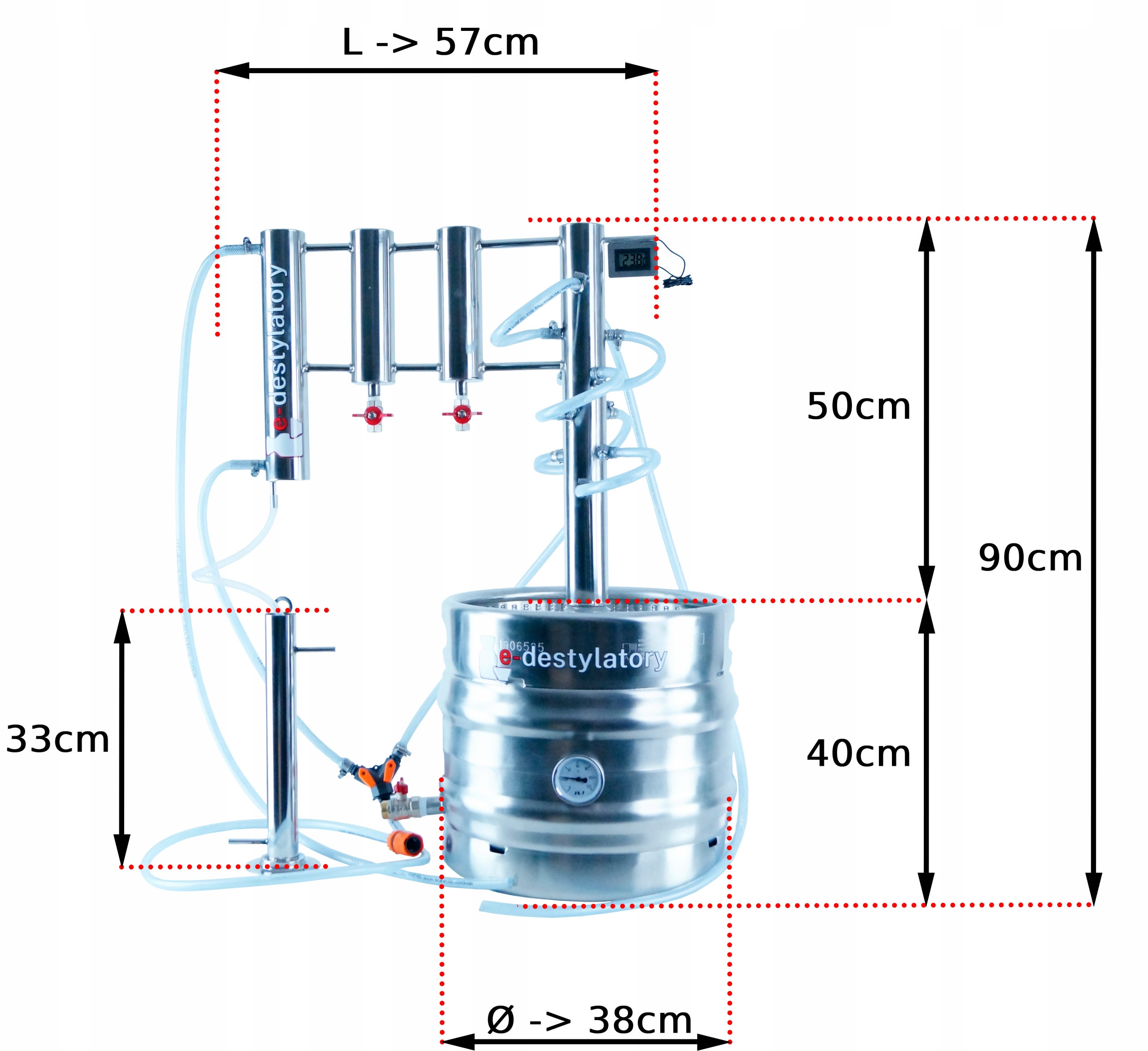- Точный электронный термометр со встроенным дисплеем в рамке - указывает температуру паров в верхней части колонны.