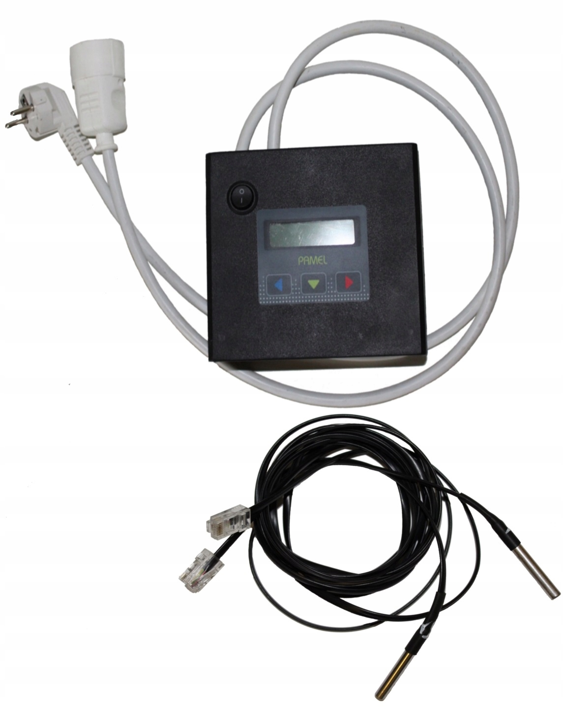 3. Автоматический контроллер с 2-мя щупами, комплектом кабелей и вилками для подключения ТЭНов и напряжения. Контроллер позволяет полностью автоматизировать процесс дистилляции – достаточно налить жидкость в дистиллятор и включить старт, все остальное сделает сам.