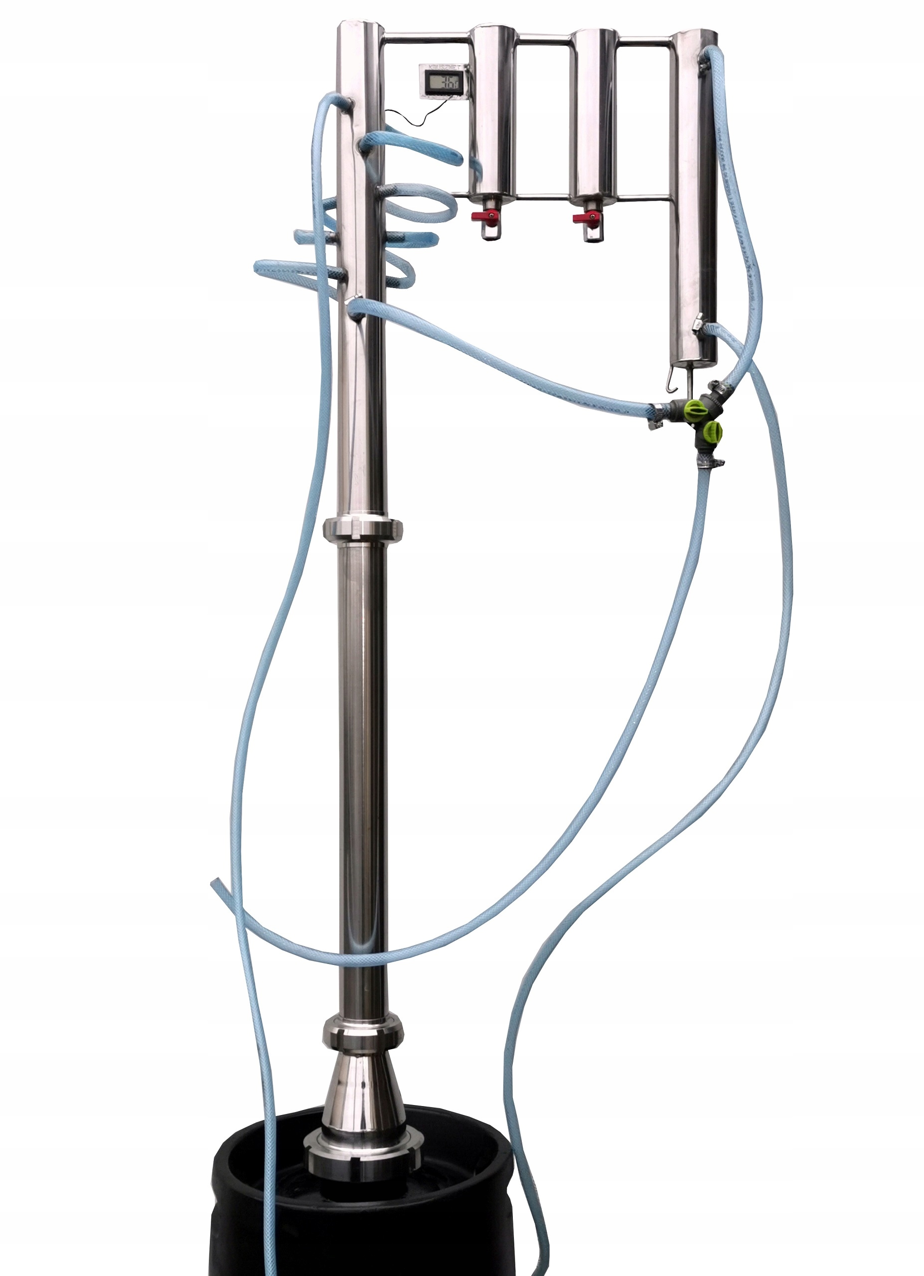 6.Точный электронный термометр, измеряющий температуру в верхней части колонны, и биметаллический дисковый термометр, указывающий температуру в бочке, что существенно облегчает процесс дистилляции. .