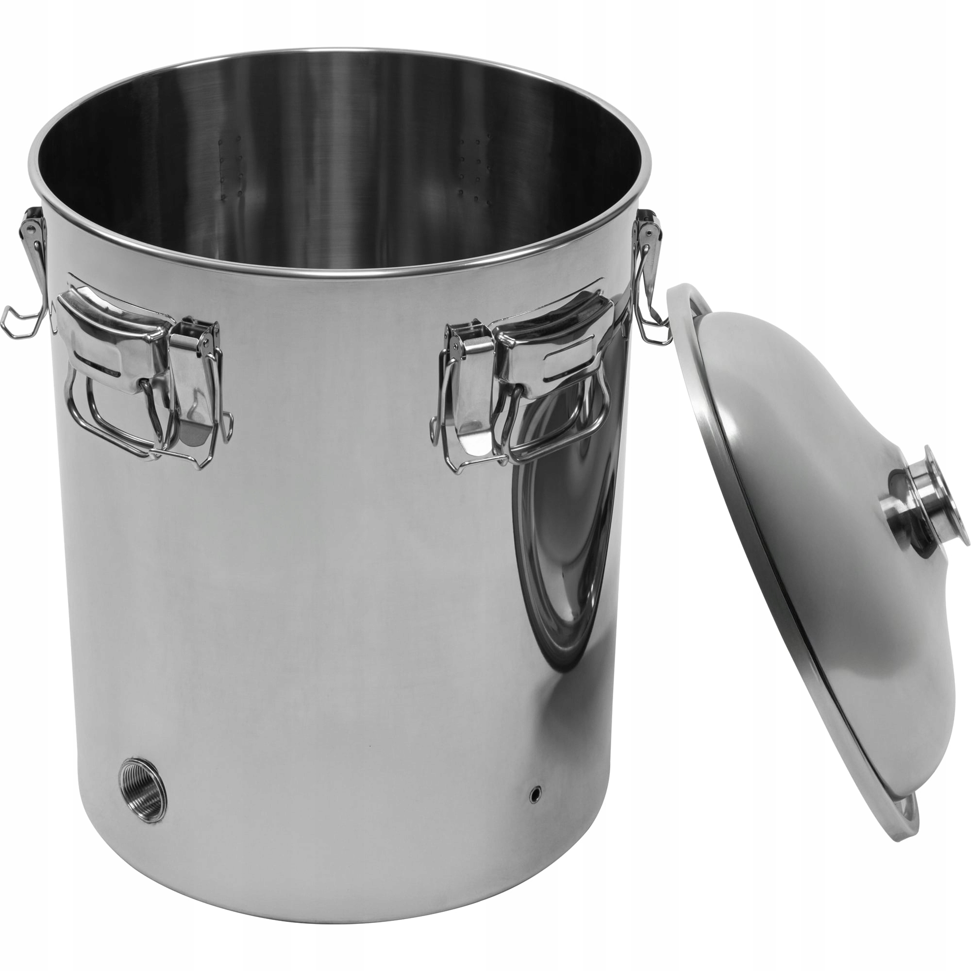 Банк емкостью 60 литров позволяет перегонять большое количество жидкости за один раз, что делает устройство чрезвычайно эффективным и экономичным в использовании. Изготовлен из нержавеющей стали (INOX), что гарантирует долговечность, устойчивость к коррозии и гигиену процесса. Выпуклая крышка купола оснащена плотной силиконовой прокладкой и прочными пряжками-защелками, обеспечивающими максимальную герметичность во время работы. Благодаря такому решению возможна безопасная перегонка даже в случае вспенивания браги, а сама крышка повышает устойчивость всего набора и облегчает очистку после работы.