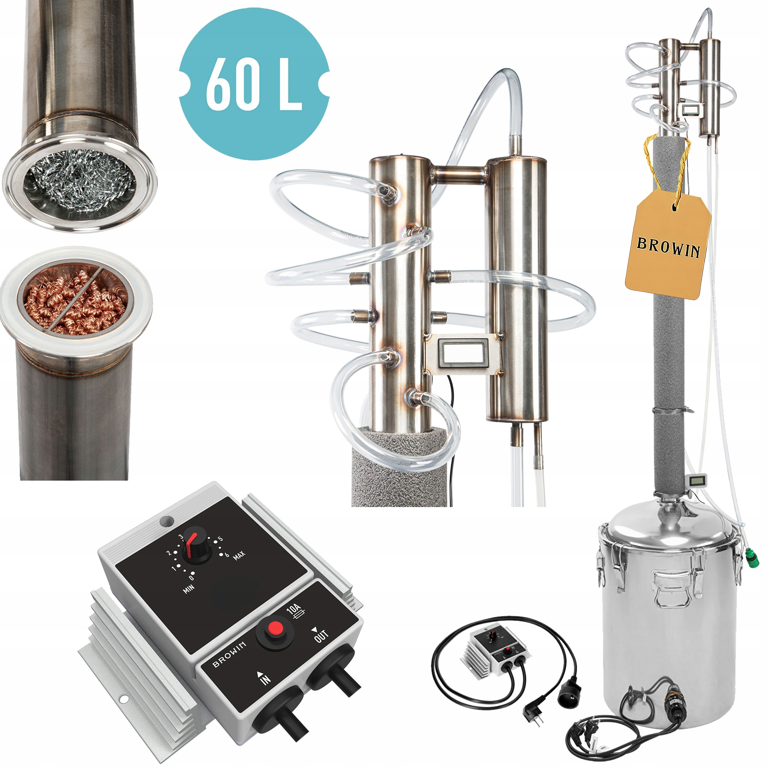 ДИСТИЛЛЯТОР COLD FINGERS 60L fi 60,3 мм РЕГУЛИРОВКА ЭЛЕКТРИЧЕСКОЙ МОЩНОСТИ BROWIN