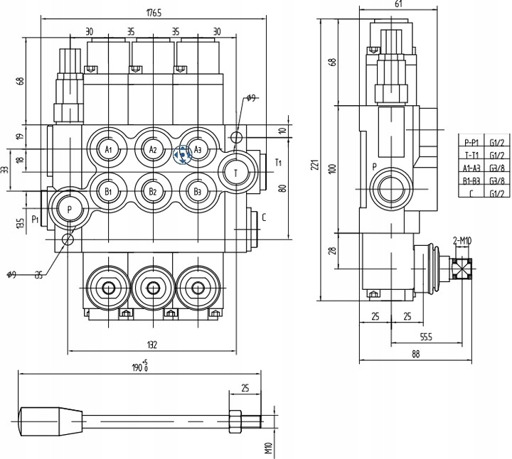 ДИСТРИБУТОР ГІДР. 3 СЕКЦІЇ 40L ЗАСУВКА + ПІДКЛЮЧЕННЯ