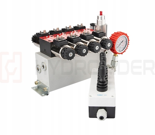 Гидравлический гидравлический дистрибьютор 12 В тип блока типа Cetop 3 ng6 h1> с пропорциональным регулятором потока h2> в комплекте с панелью управления гидролезом, манометом, электрическими пробками и соединениями h2>