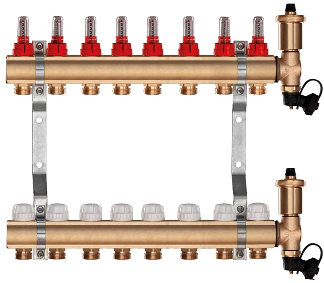 Местный напольный коллектор с набором вентиляции для 8 цепей