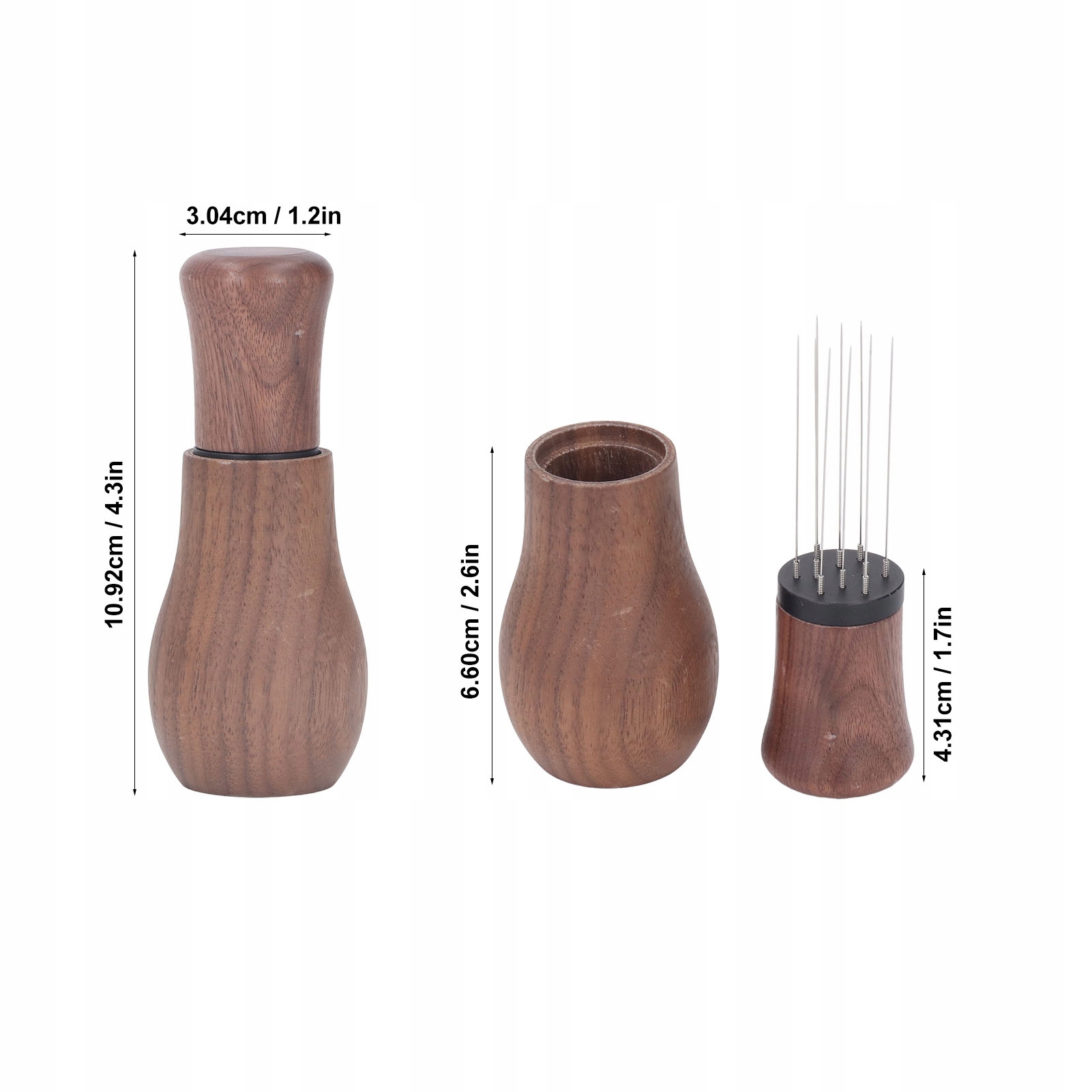 3. Сплошное древесина: этот дистрибьютор кофе игольчатого кофе сделан из материала гайки высочайшего качества, включая ручку и подставку, долговечную и долговечную.