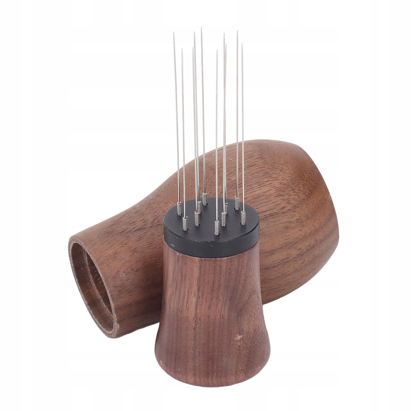 3. Сплошное древесина: этот дистрибьютор кофе игольчатого кофе сделан из материала гайки высочайшего качества, включая ручку и подставку, долговечную и долговечную.