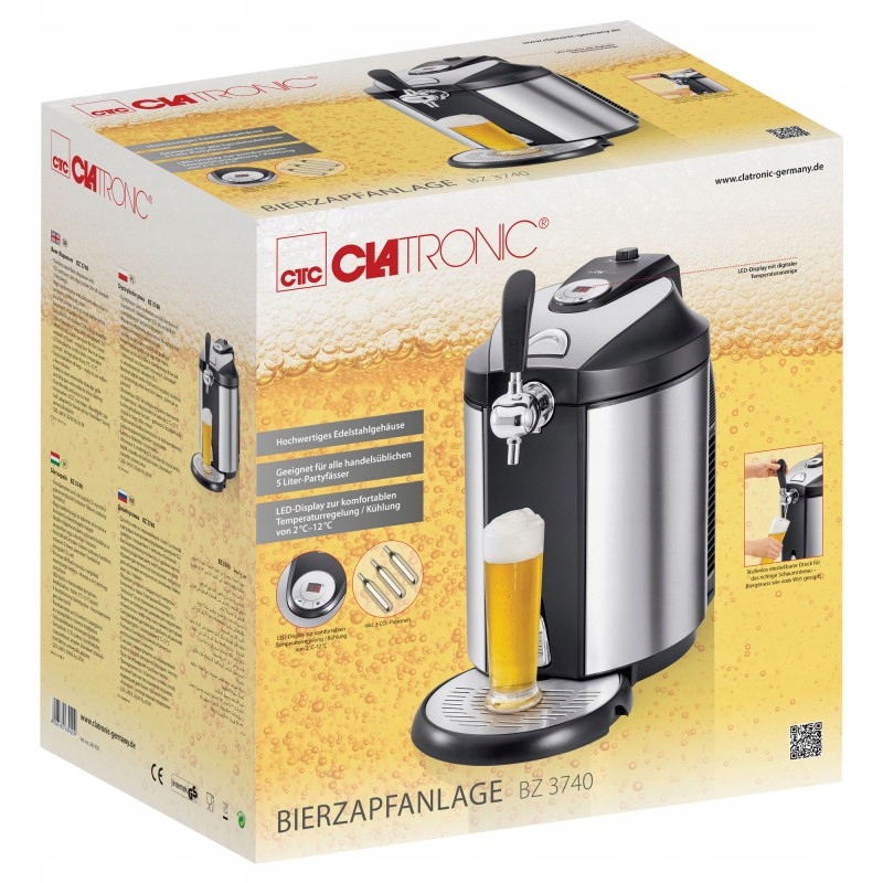 ✅clatronic BZ 3740 - универсальный дистрибьютор пива со встроенной системой охлаждения. Он подходит для всех 5-литровых бочек с помощью системы CO2 Cartouche и стволами Heineken со встроенным CO2.
