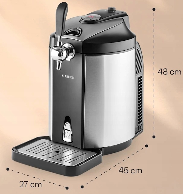 Чтобы увеличить удовольствие от питья пиво, дистрибьютор оснащен интегрированной системой термоэлектрического охлаждения с возможностью снижения температуры пива в диапазоне от 2 до 12 ° C. после добавления 0,8 литра воды, охладителя пива, пива, гораздо эффективнее. Атрибут пивной настойки заключается не только в том, чтобы обеспечить золотой напиток, но и для обеспечения приятных визуальных ощущений. дистрибьютор klarstein масштаб с триггерным краном и блестящим корпусом из нержавеющей стали является реальным украшением плеча. И если при заполнении кружков случайно падают несколько капель, поднос для капельницы быстро и надежно вступает во владение. Время для багажника!