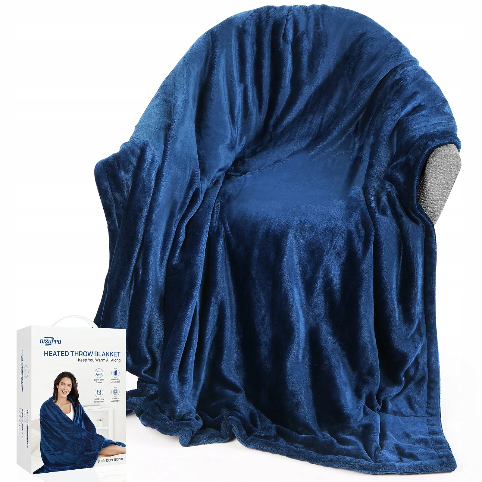 Нагревательное одеяло Disuppo с 10 уровнями нагрева и 9 временными уровнями для быстрого нагрева, 130 x 180 см. Суперкомфортное фланелевое нагревательное одеяло, с функцией автоматического отключения 1-9 часов, защита от перегрева