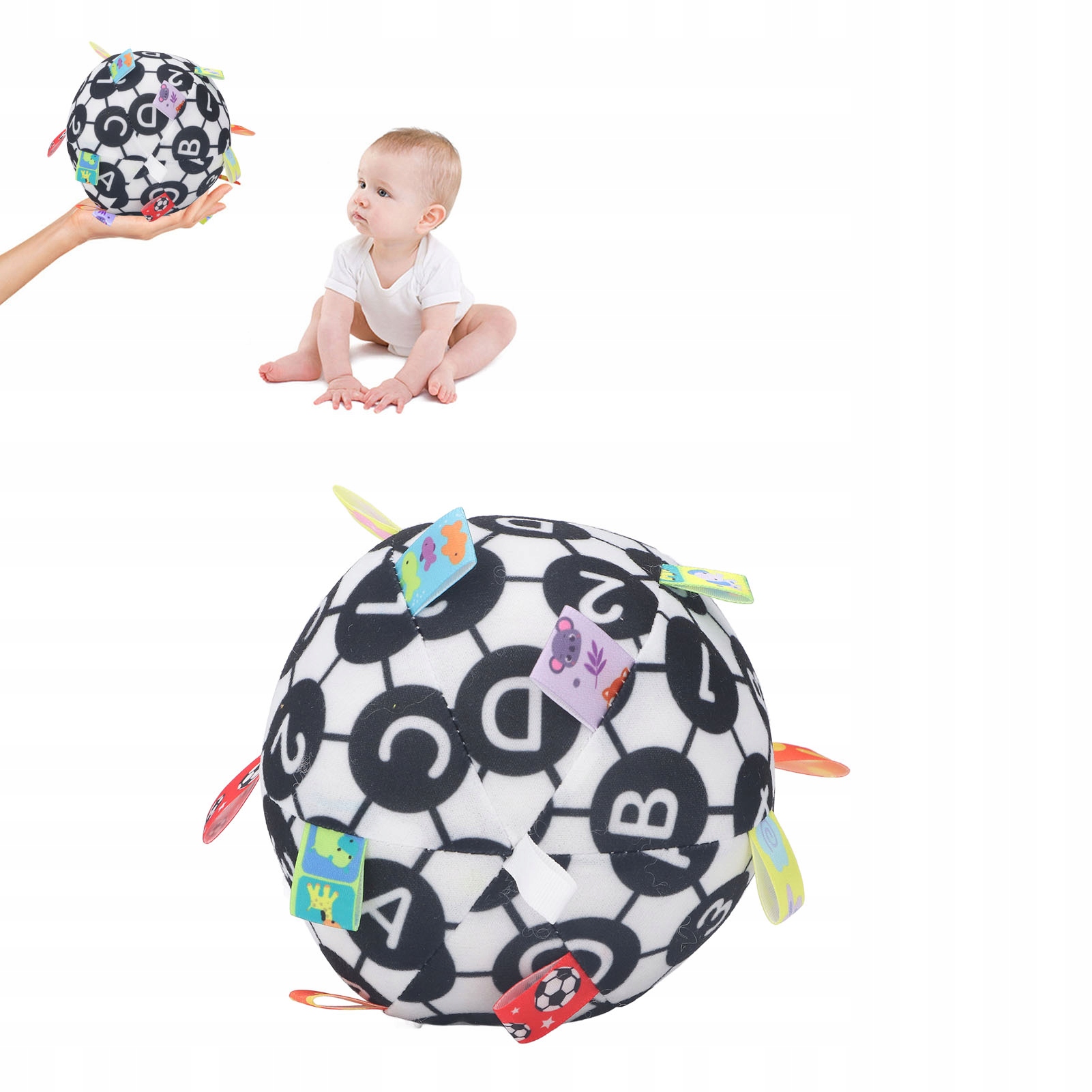 Ребенок ловит тканевый мяч Черно-белый Визуальное обучение R4