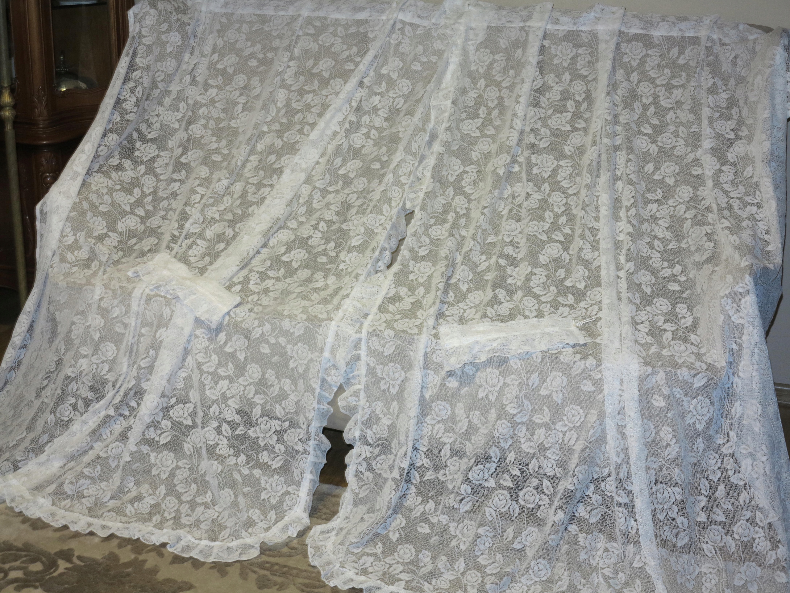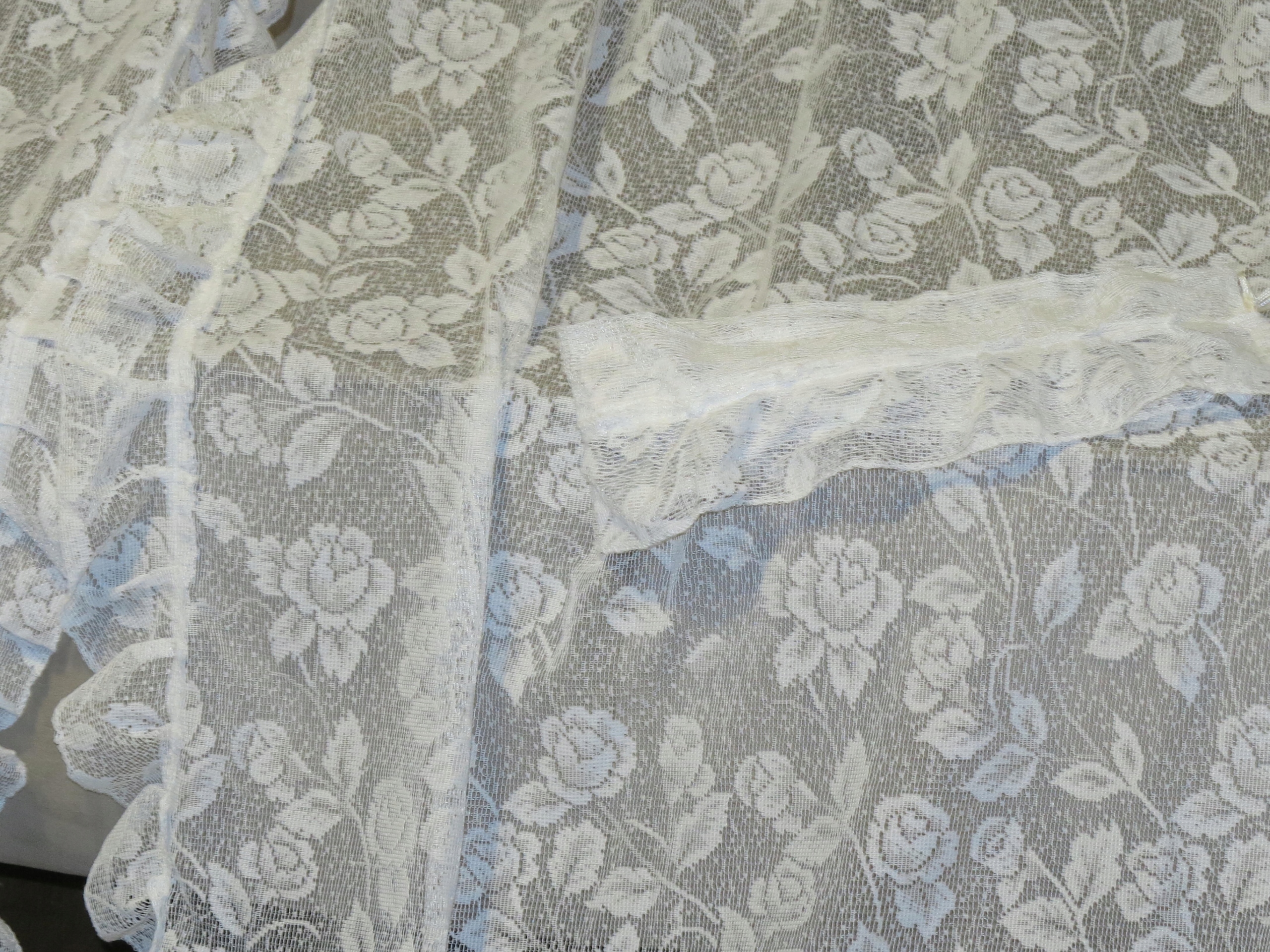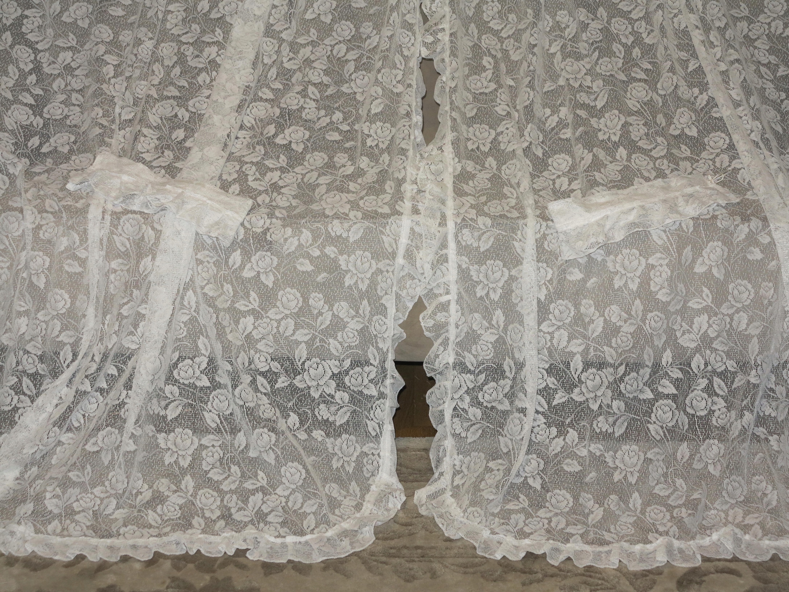 МАЛЫШ - АНГЛИЙСКИЙ, ОЧАРОВАТЕЛЬНЫЙ, БЕЛЫЙ КРУЖЕВНОЙ ШТОР, СОСТОЯЩИЙ ИЗ ДВУХ ОТДЕЛЬНЫХ ПОЛОВИНОК С Оборки. ПОЛНОСТЬЮ С РЕБЯТКАМИ. УЗОР РОЗА