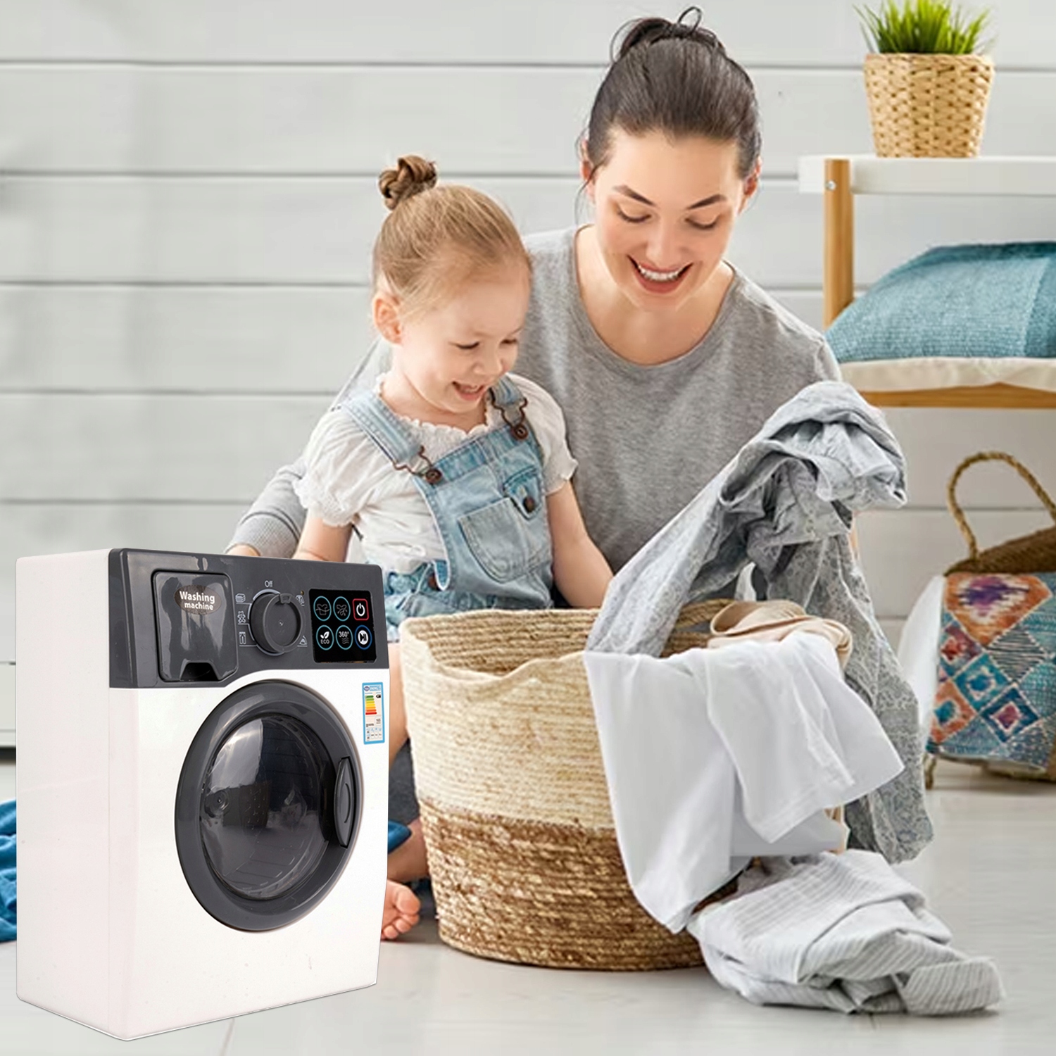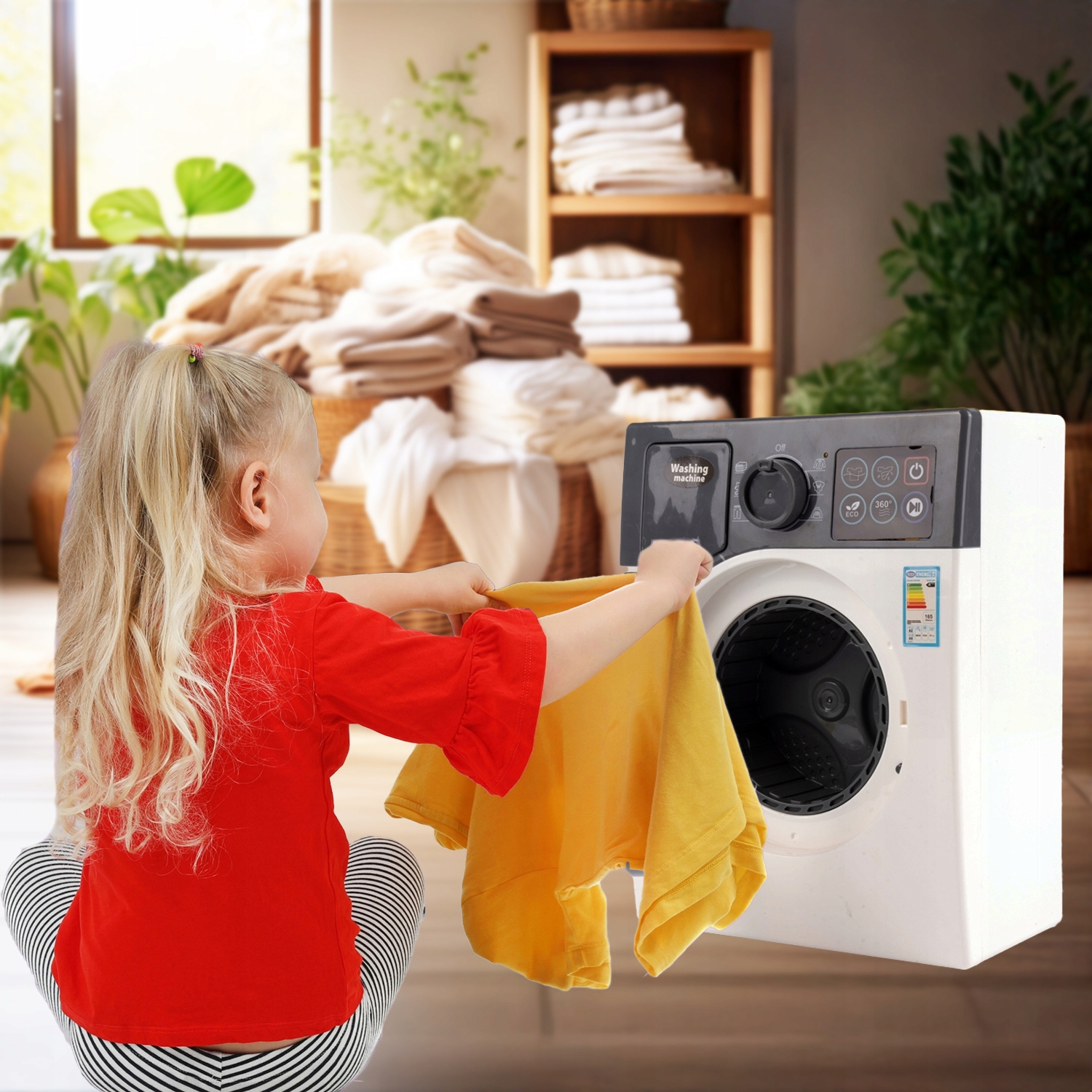 АВТОМАТИЧЕСКАЯ СТИРАЛЬНАЯ МАШИНА ДЛЯ ДЕТЕЙ, ИНТЕРАКТИВНАЯ, СВЕТОДИОДНЫЕ ЗВУКИ, ОТКРЫВАЮЩИЙСЯ БАРАБАН, БЫТОВАЯ ТЕХНИКА