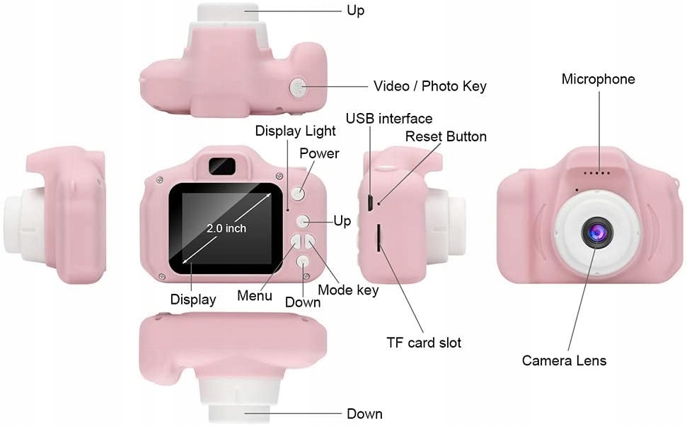 - Множество функций и простота в использовании. Новая 2-дюймовая детская камера оснащена дополнительными функциями, включая автофокусировку, 4 забавных фотографии, серийную съемку, 4 цветных фильтра и параметры съемки с управлением по времени. Простота в эксплуатации, подходит для маленьких детей.