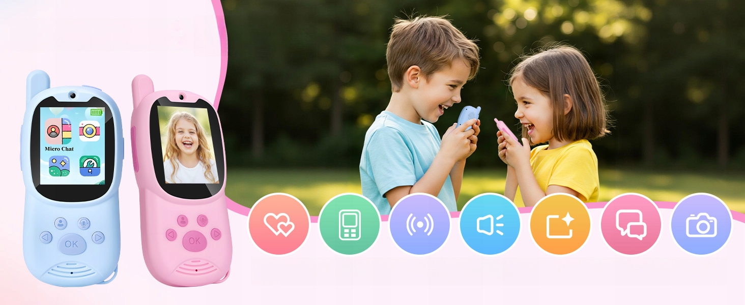 ✨Это больше, чем просто рация — это инструмент для видеозвонков и приключений для детей! Благодаря встроенной камере 480P, голосовым фильтрам и большому радиусу действия братья, сестры и друзья могут видеть, разговаривать и играть вместе дома или на улице. Никакого Wi-Fi и SIM-карты, только творческое развлечение.