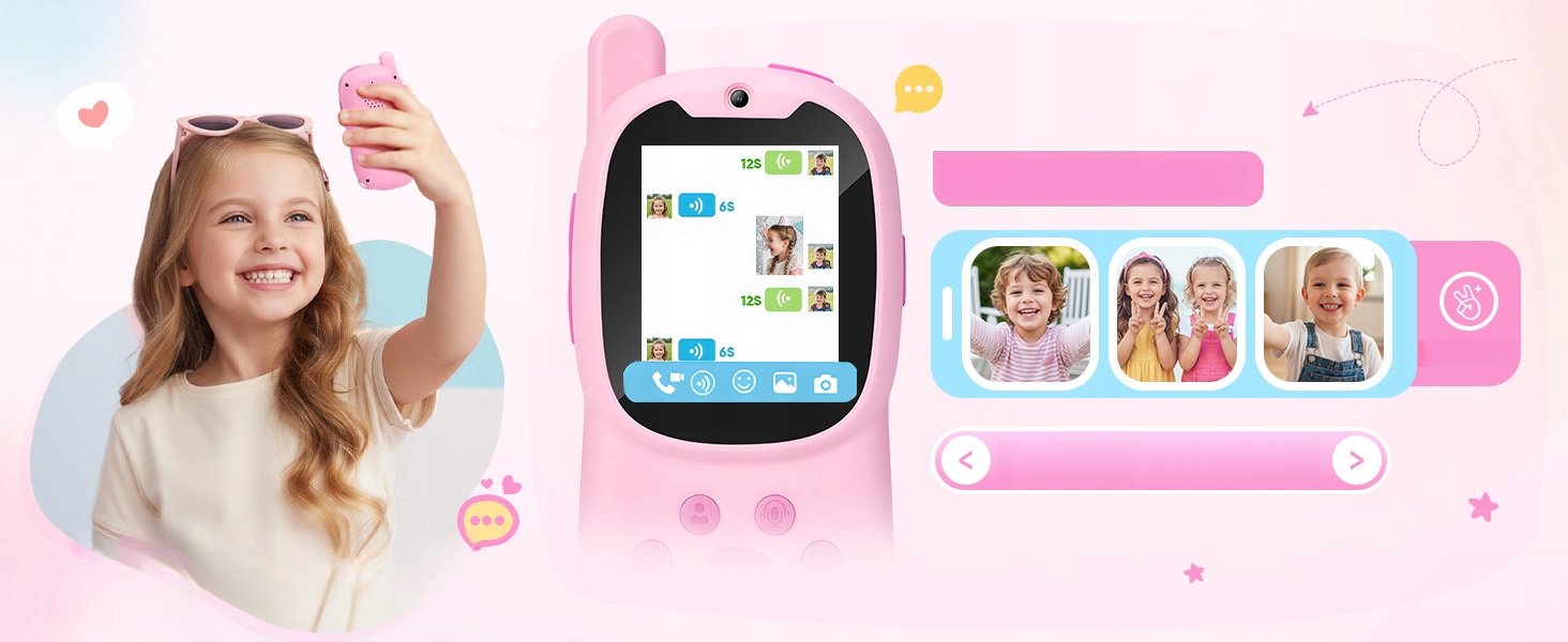 Это больше, чем просто функция рации: встроенная HD-камера 480P и IPS-дисплей позволяют осуществлять видеозвонки в реальном времени. Независимо от того, играют ли ваши дети в прятки дома или исследуют мир во время похода в парке, вы можете быть в курсе их приключений, что обеспечивает более близкое, живое и увлекательное общение.