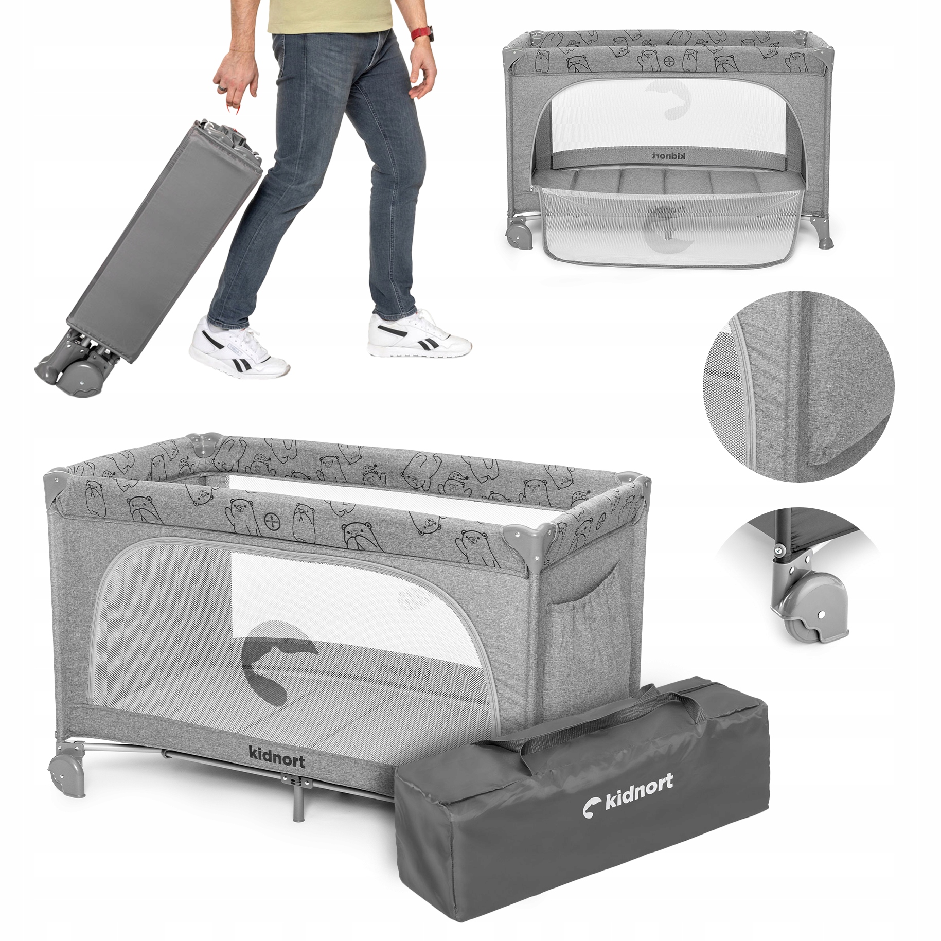 В комплект входит сумка для транспортировки, облегчающая переноску кроватки.