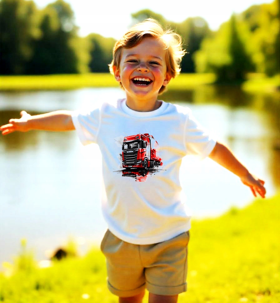 Детская футболка Auto Scania tir 2 bia%c5%82a m (7-8 лет)