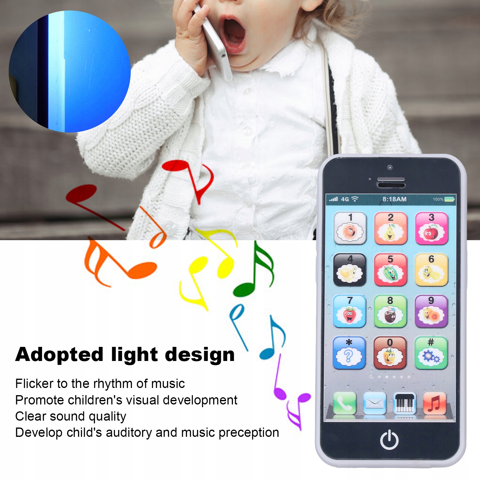 1. В форме моделирования: детская игрушка-телефон, имитирующая моделирование мобильного телефона, чтобы привлечь внимание детей, с простым интерфейсом для удобства управления.