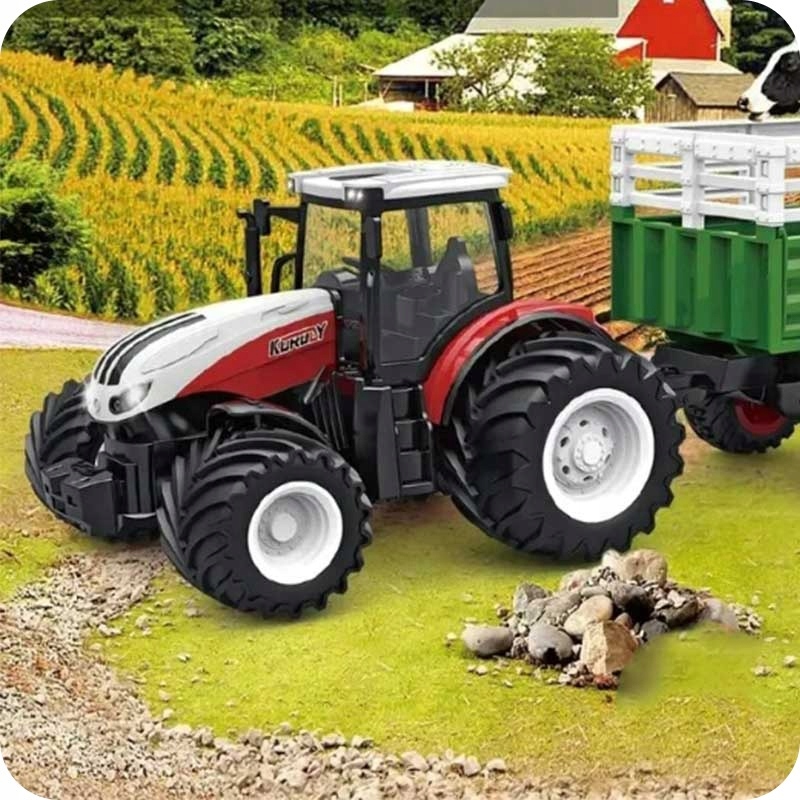 Осуществите мечту вашего ребенка стать маленьким фермером благодаря уникальному трактору с дистанционным управлением и прицепом!