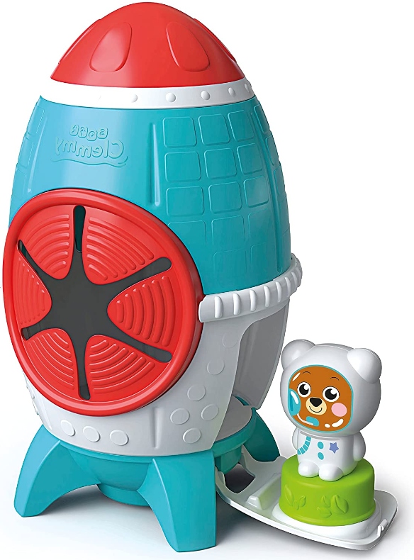 Ребенок сможет класть кубики в мягкое резиновое отверстие и брать их. наружу, открыв крышку. Фигурку плюшевого мишки можно прикрепить к кубикам и поместить в ракету, и она будет готова отправиться в мягкую вселенную Клемми!