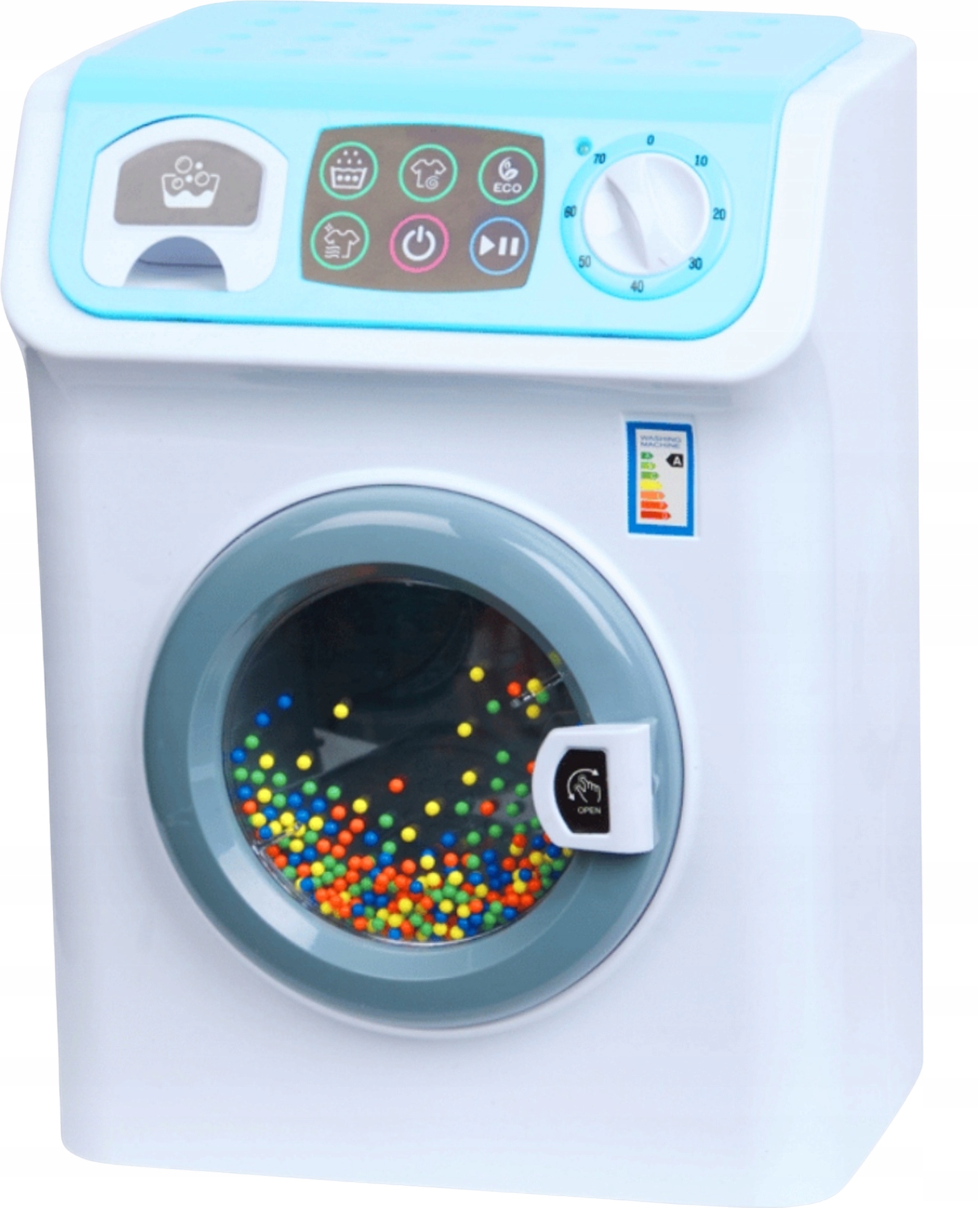 ⭐ Открывающаяся дверца и вращающийся барабан - с разноцветными шариками, имитирующими стирку в движении.