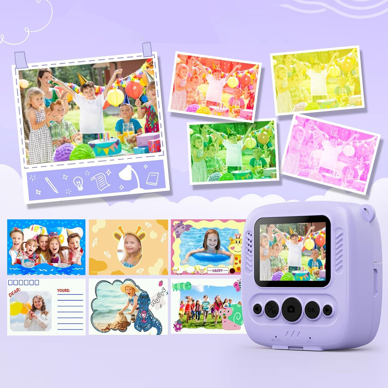 Мы используем экологически чистую технологию термопечати, чтобы обеспечить безопасность детских фотоаппаратов и бумажных материалов. Благодаря объективу HD 48 МП и записи видео 1080P ваши дети смогут запечатлеть каждый динамичный момент. Подходит для мальчиков и девочек, которые можно носить с собой каждый день, чтобы записывать встречи с друзьями, школьные походы, мероприятия на свежем воздухе, школьные вечеринки, семейные встречи и путешествия с родителями.
