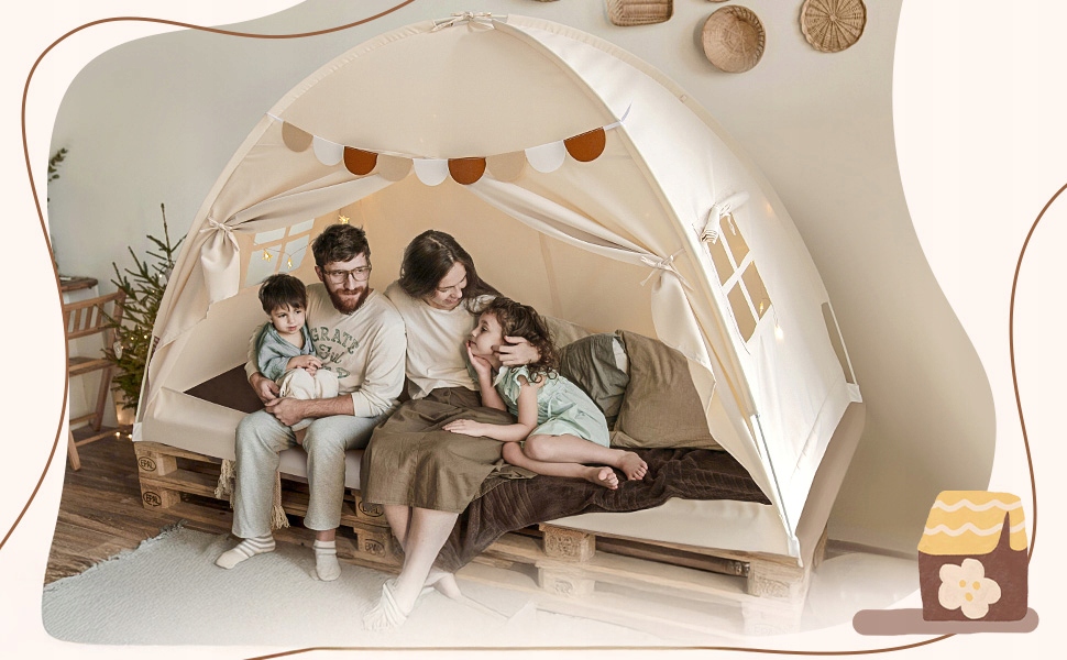 - ✔️Оснащенный световой веревкой в форме звезды и яркими флажками, он создает романтическую атмосферу, где дети могут спать, играть, читать и многое другое.