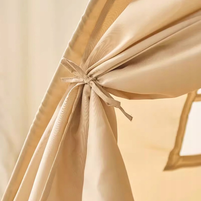 Эта палатка изготовлена из дышащей и мягкой полиэфирно-хлопковой ткани, армированной прочными опорами из стекловолокна, поэтому вам не придется беспокоиться о том, что ребенок перевернется во время сна.