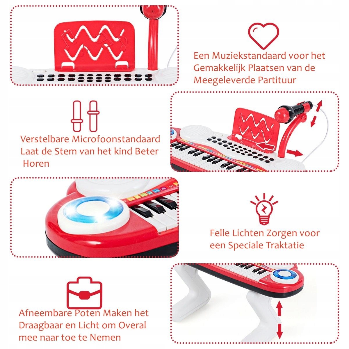 Игрушечное пианино с 37 клавишами и 8 ритмические режимы и звуки 8 инструментов и 4 барабанов позволяют детям свободно играть на клавиатуре. Также имеется внешний микрофон и функция записи и воспроизведения, которые могут стимулировать музыкальные таланты детей. Не беспокойтесь о безопасности продукта. Клавиатура изготовлена из экологически чистого и безопасного материала ABS, не наносящего вреда здоровью детей.