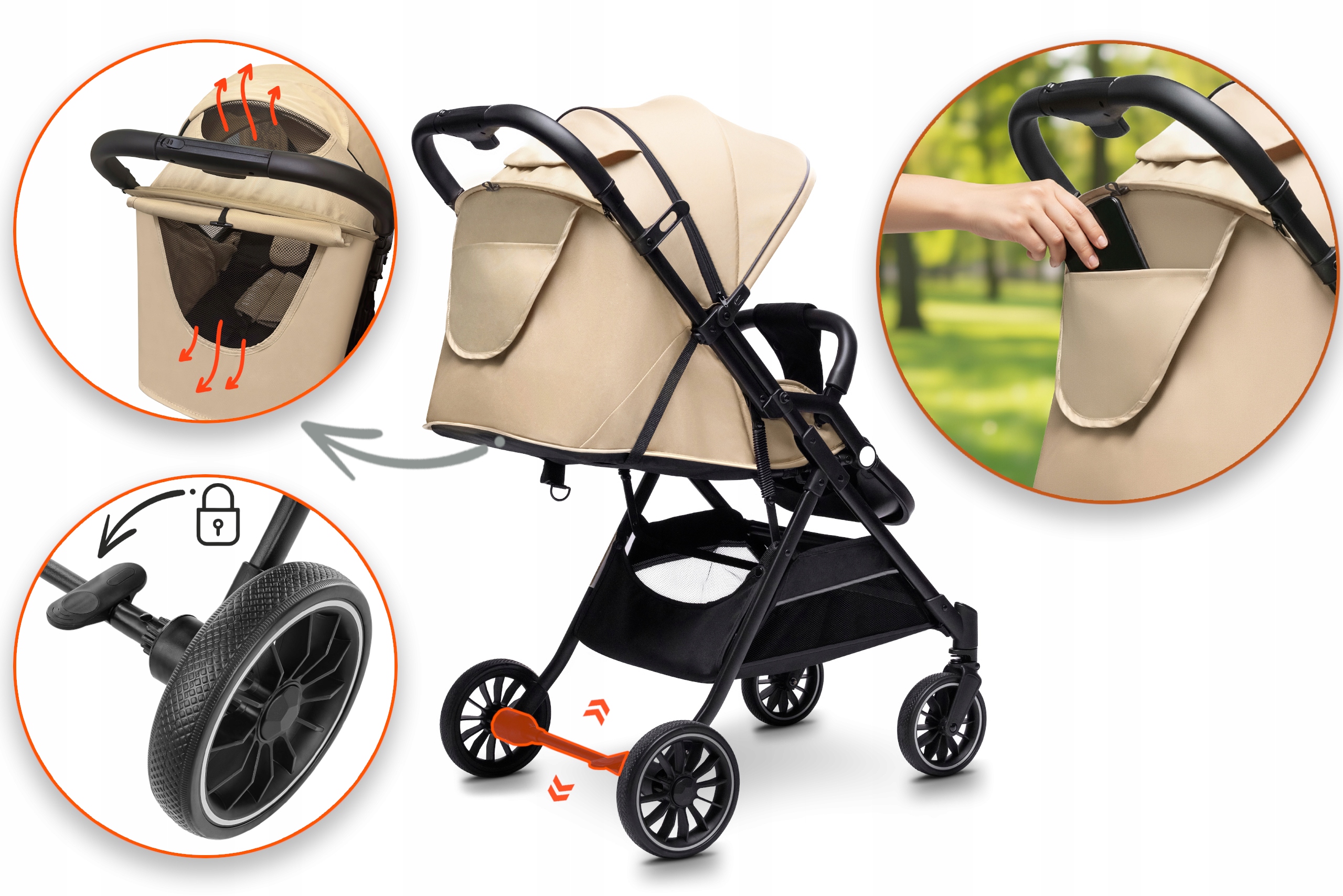 ✅ Легкая система складывания одной рукой - за несколько секунд можно сложить коляску до компактных размеров, что чрезвычайно практично во время повседневных прогулок или путешествий.