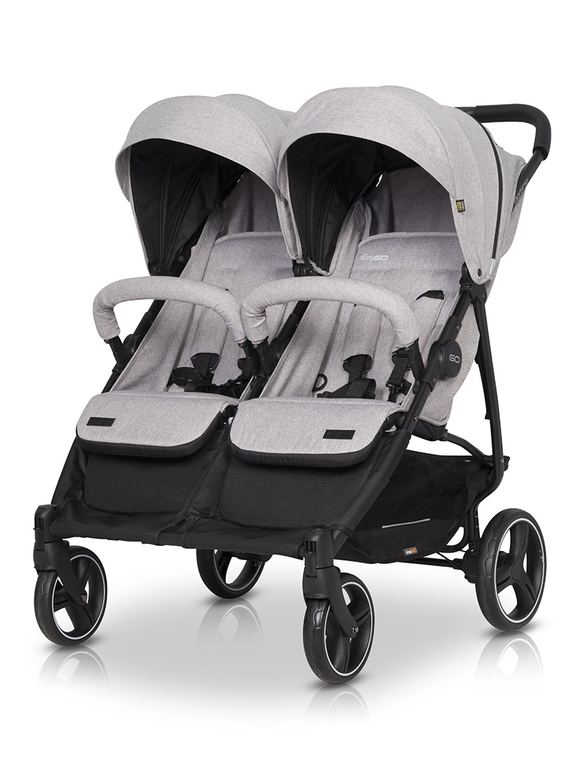Добавив модные структурные ткани и направляющую, обтянутую вручную экологической кожей, мы получаем один из самые интересные коляски для близнецов на рынке.