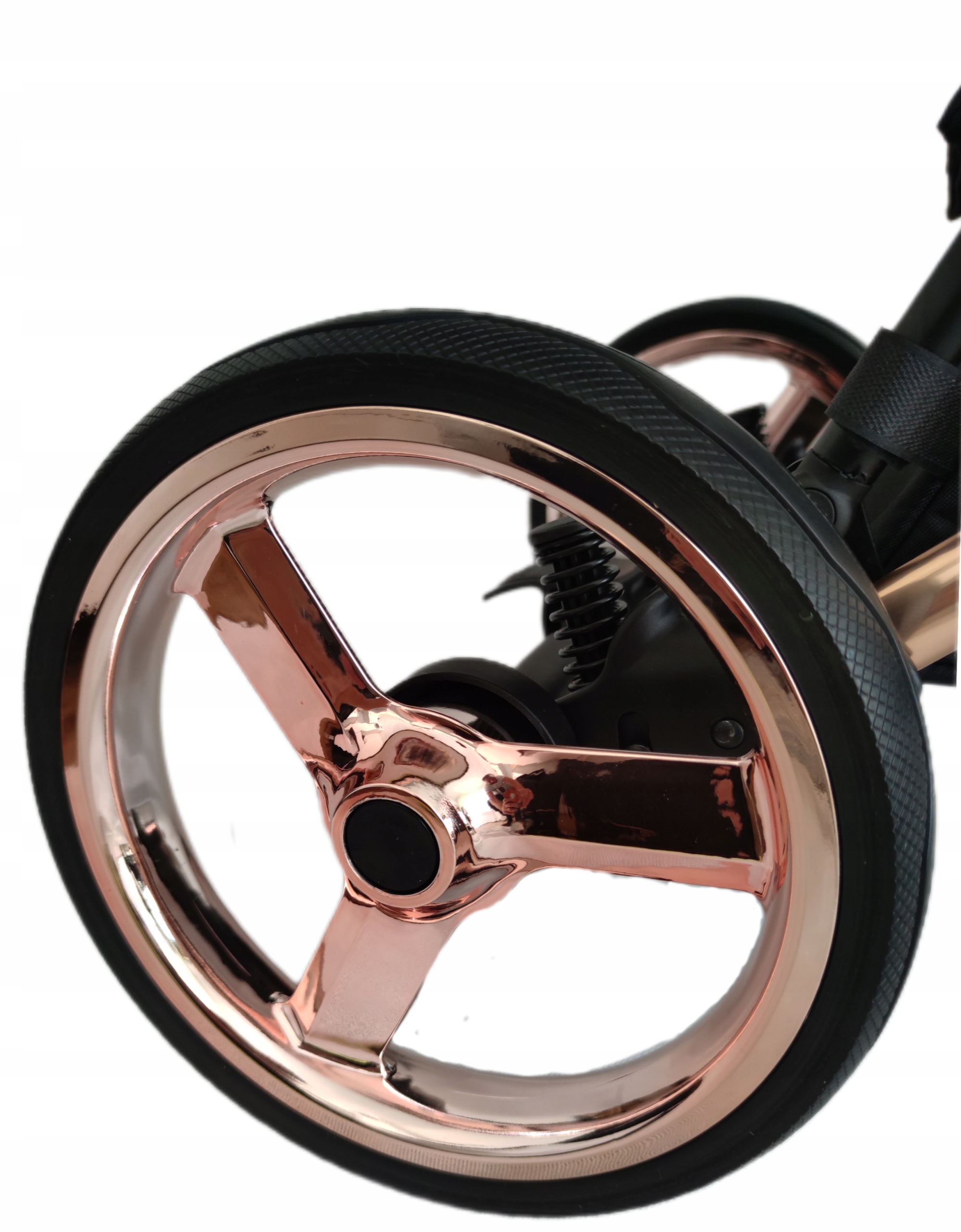 В коляске Panama используются красивые колеса медного цвета, как и у рамы коляски. Гелевые шины с дополнительным усиленным протектором. Оси задних колес съемные.