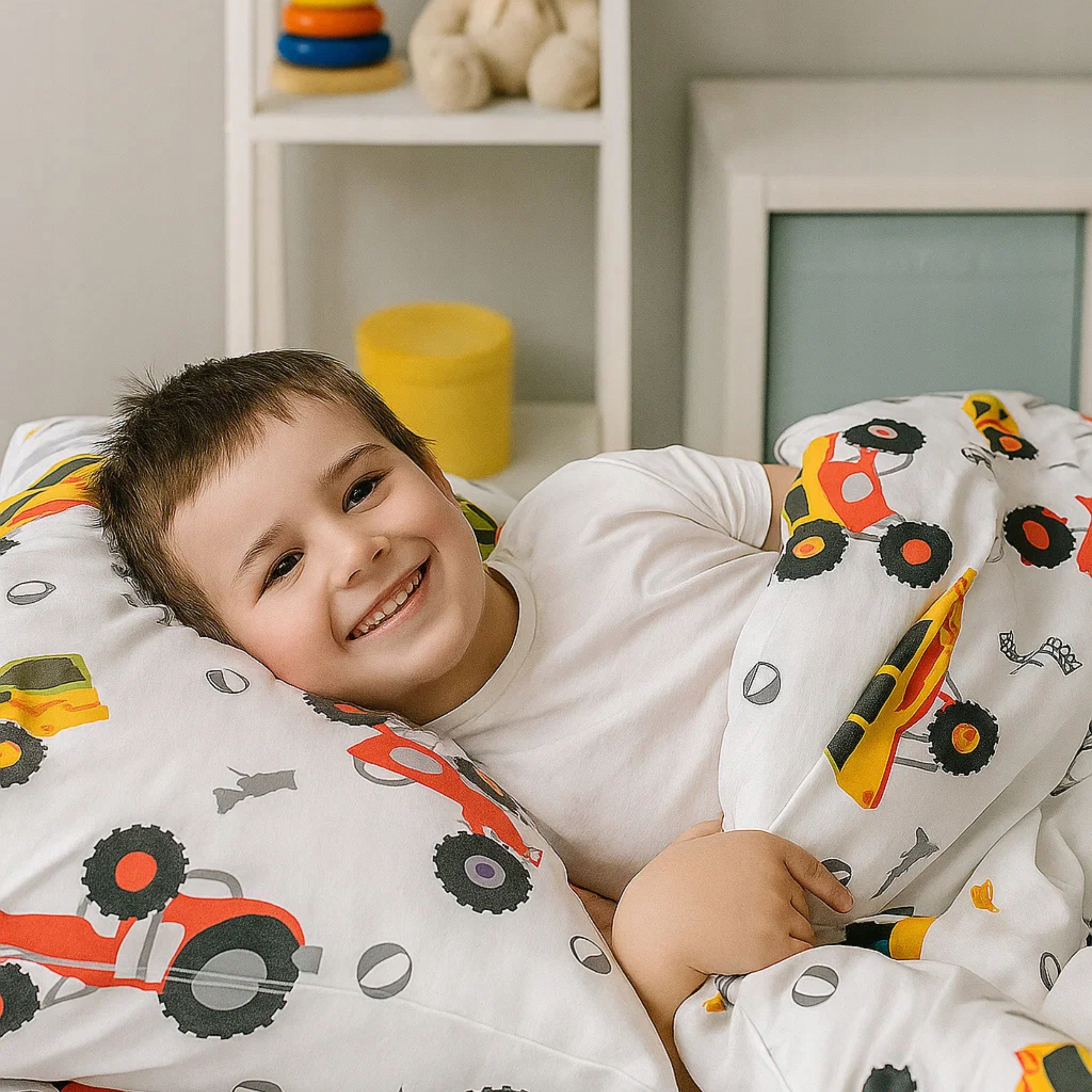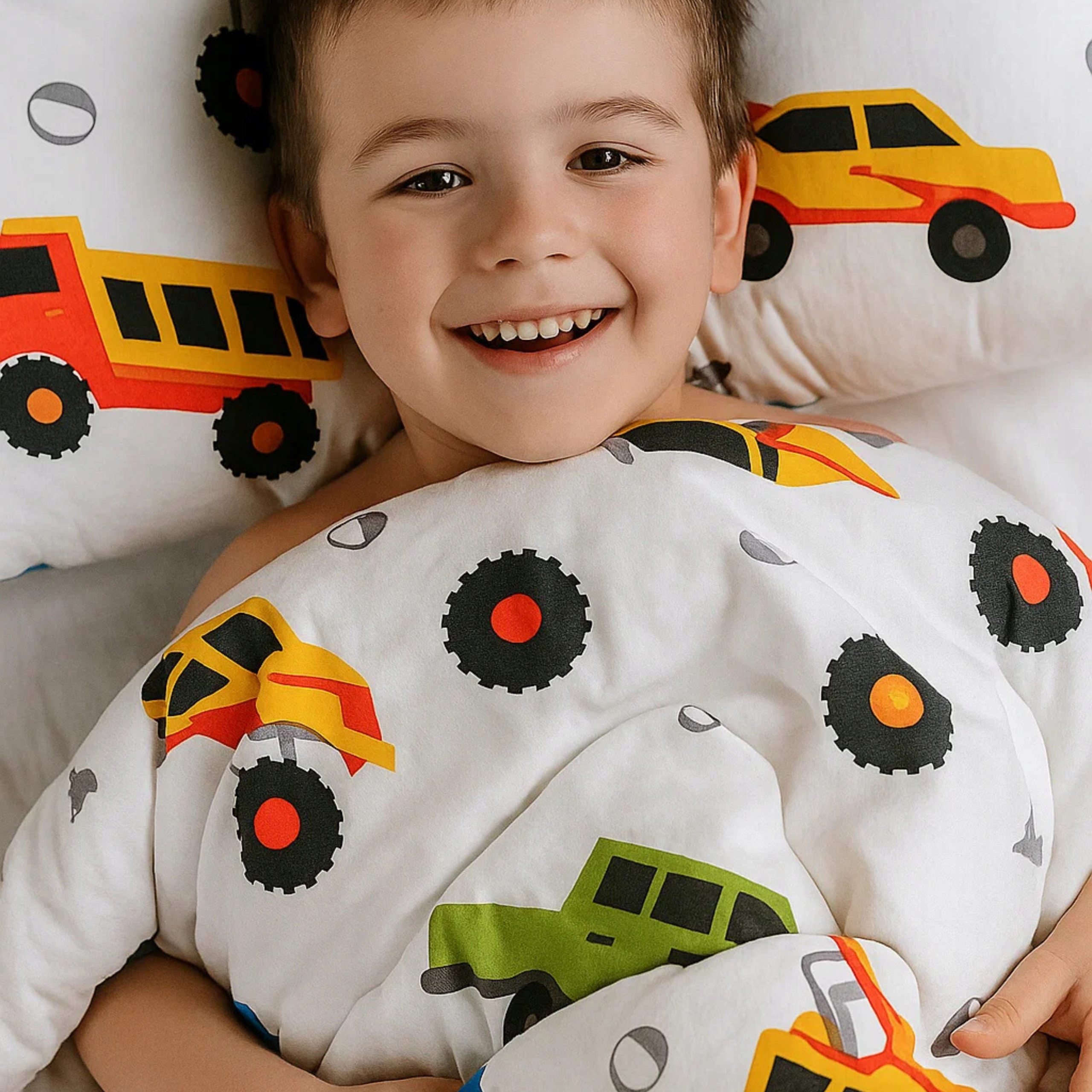 стеганое одеяло + все -еральная анти -аллергическая подушка для ребенка 100x135 + 50x60cm h1> Monster Truck h1>