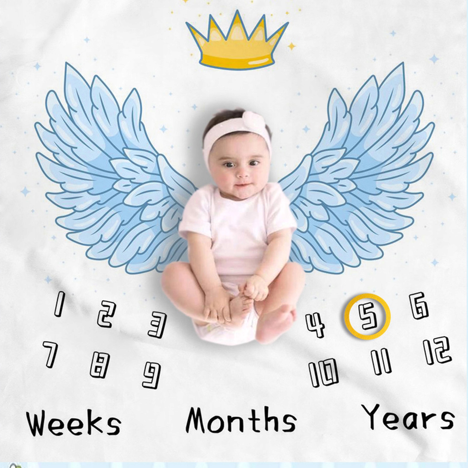 Детское одеяло Milestone, мягкое, удобное, моющееся, с дизайном короны и крыльев, детское одеяло месяца для реквизита для фотографий