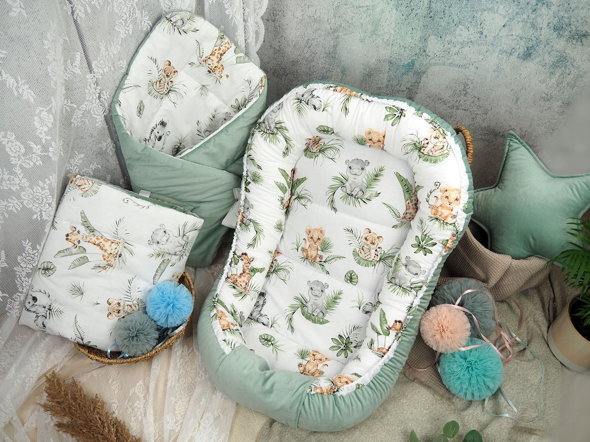 детское одеяло хлопковое сафари и бархат 75 × 100 см h2> двойной - 100 % хлопок + шалфея бархат | Ручная работа в Польше