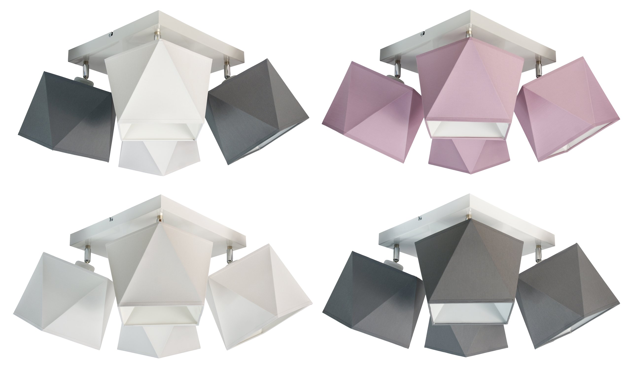 Представляем Вам пылающий квадратный потолочный светильник DIAMENT 4 с цоколем 30х30см и четырьмя подвижными световыми точками. Абажуры, видимые на фотографиях, представляют собой комбинацию ткани и пластика.