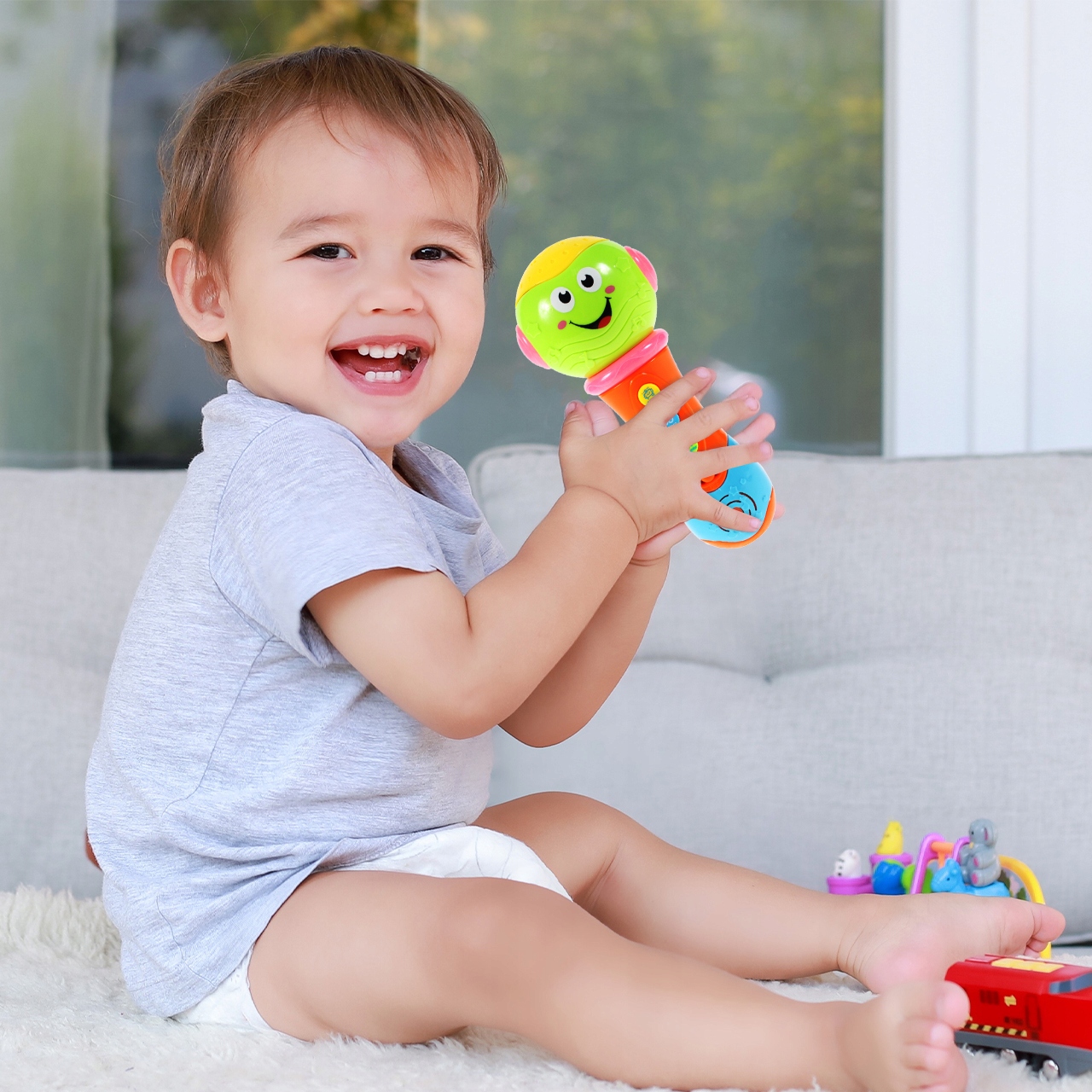 Микрофон имеет 13 мелодий, включая диско и смех. Это отличный вариант для маленьких детей, которые начинают открывать для себя ритм и музыку. Просто нажмите соответствующую кнопку, и ваш малыш сможет наслаждаться звуками.